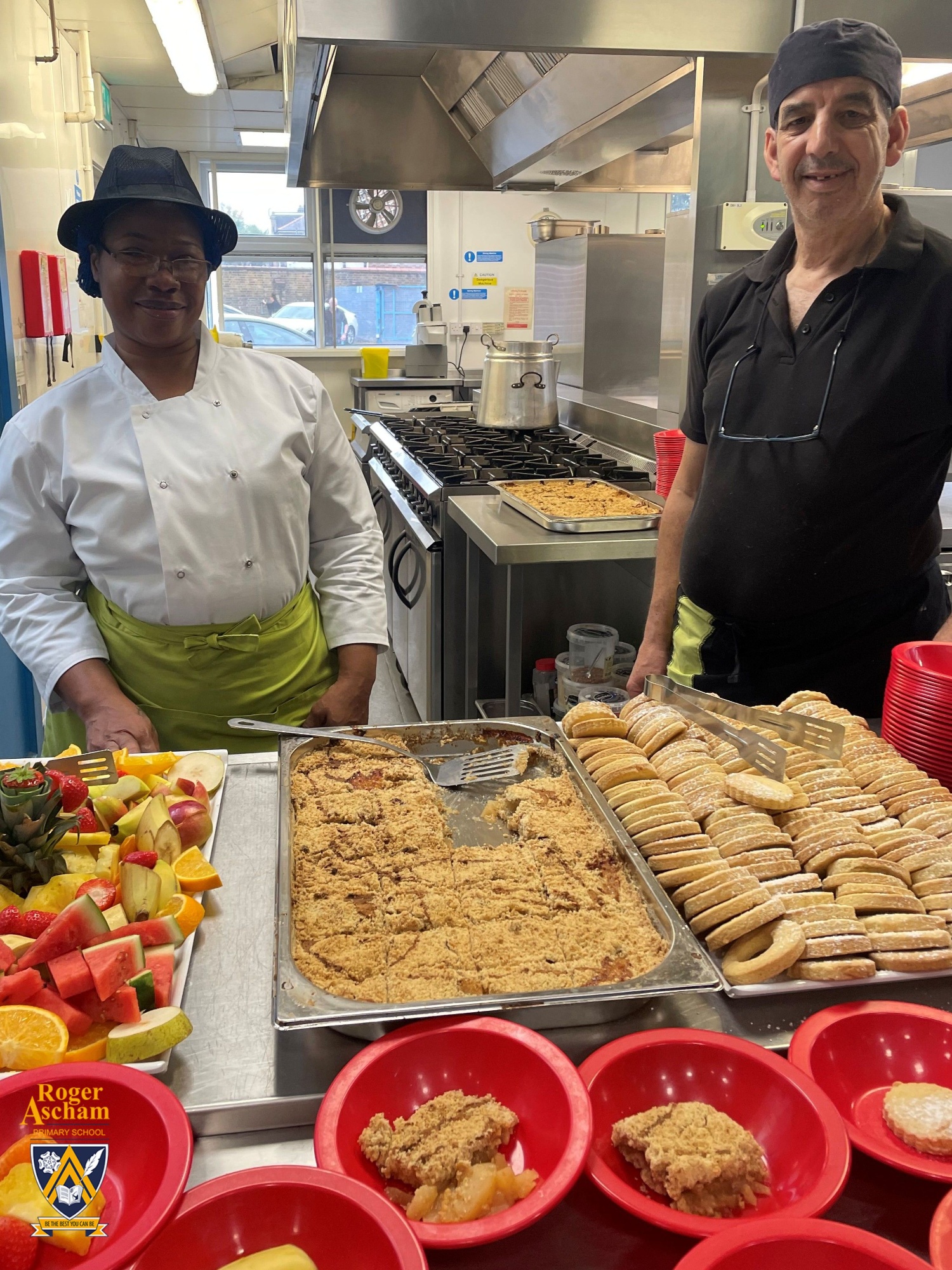 At Roger Ascham Primary School, all of our school lunches are freshly prepared and cooked on site by our new Head Cook, Ms A Agard and her team. Since Ms Agard's arrival, we have seen an increase in the number of children having a hot school meal, and the number of staff having a school meal has increased too!